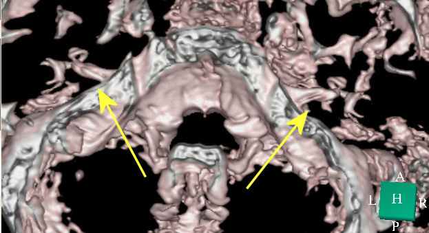 めまいや慢性中耳炎、副鼻腔炎などではCTやMRIなどの画像診断も積極的に行っています。 撮影は済生会吹田病院や摂津医誠会病院に行っていただくことになりますが、下記のような解析を行うことで 見逃しを減らしたり、被曝線量を減らす努力をしています。