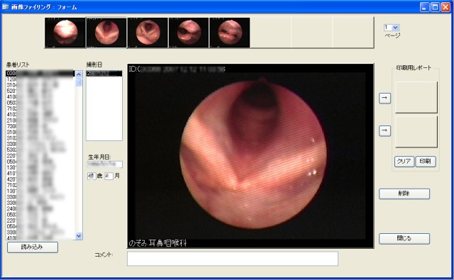 当院では自作の画像ファイリングシステムで、内視鏡カメラ、CT、MRIのデジタル画像を患者さんごとに