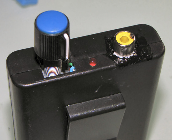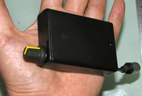 リチウムポリマー電池を使い、額帯鏡に取り付けコードレスにしたもの